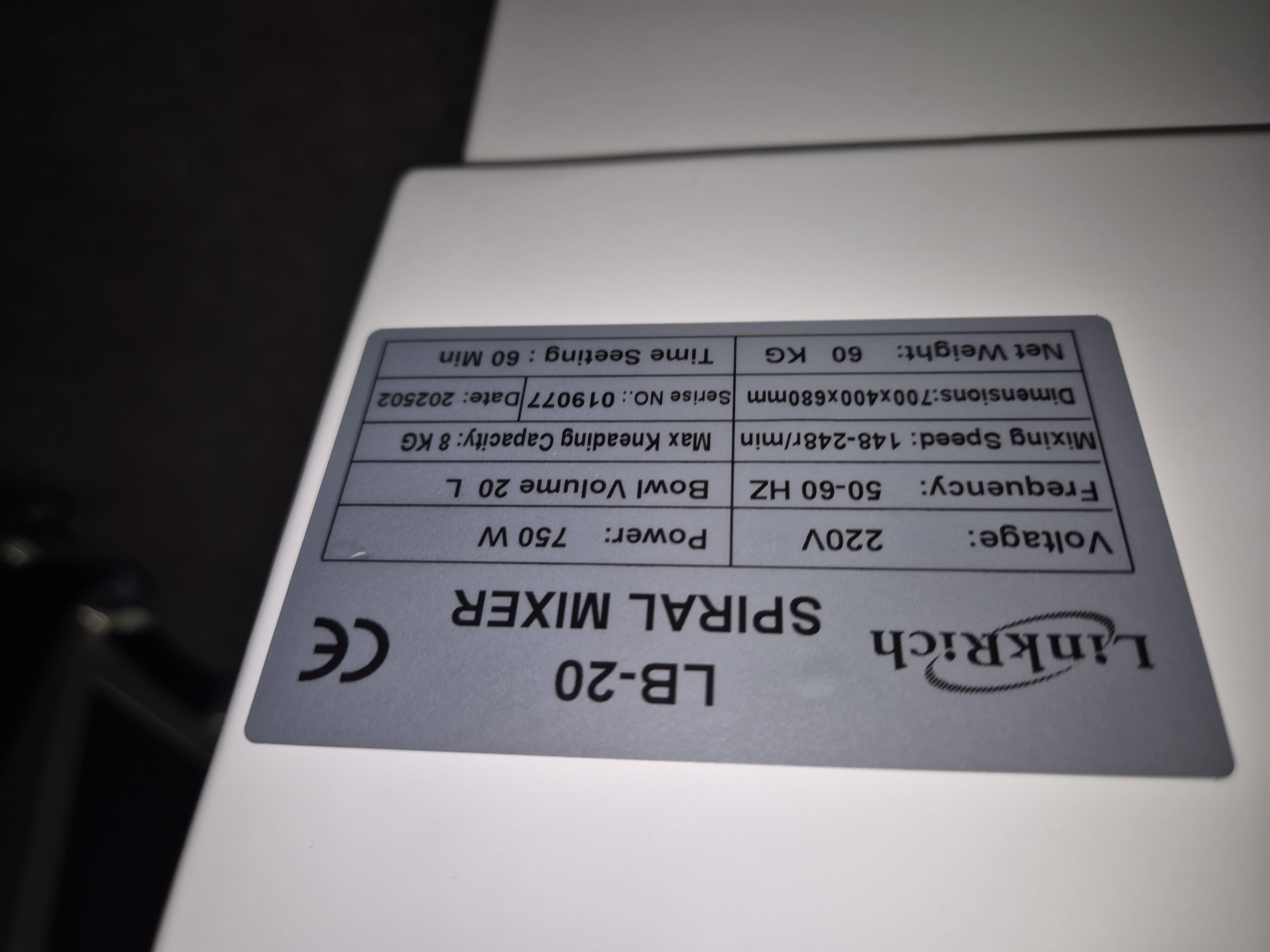 LB20 spiral mixer nieuw