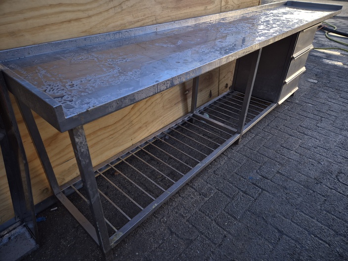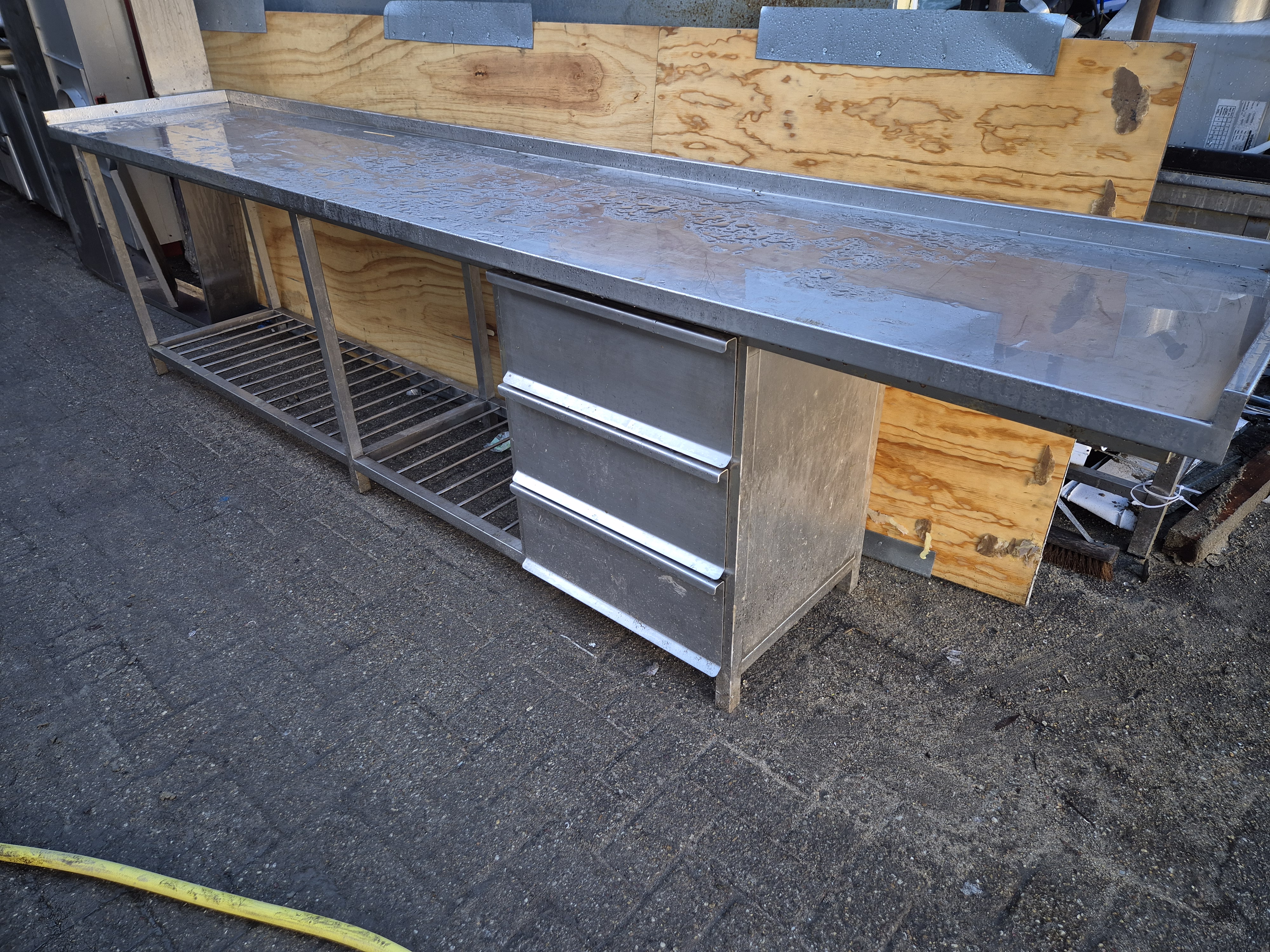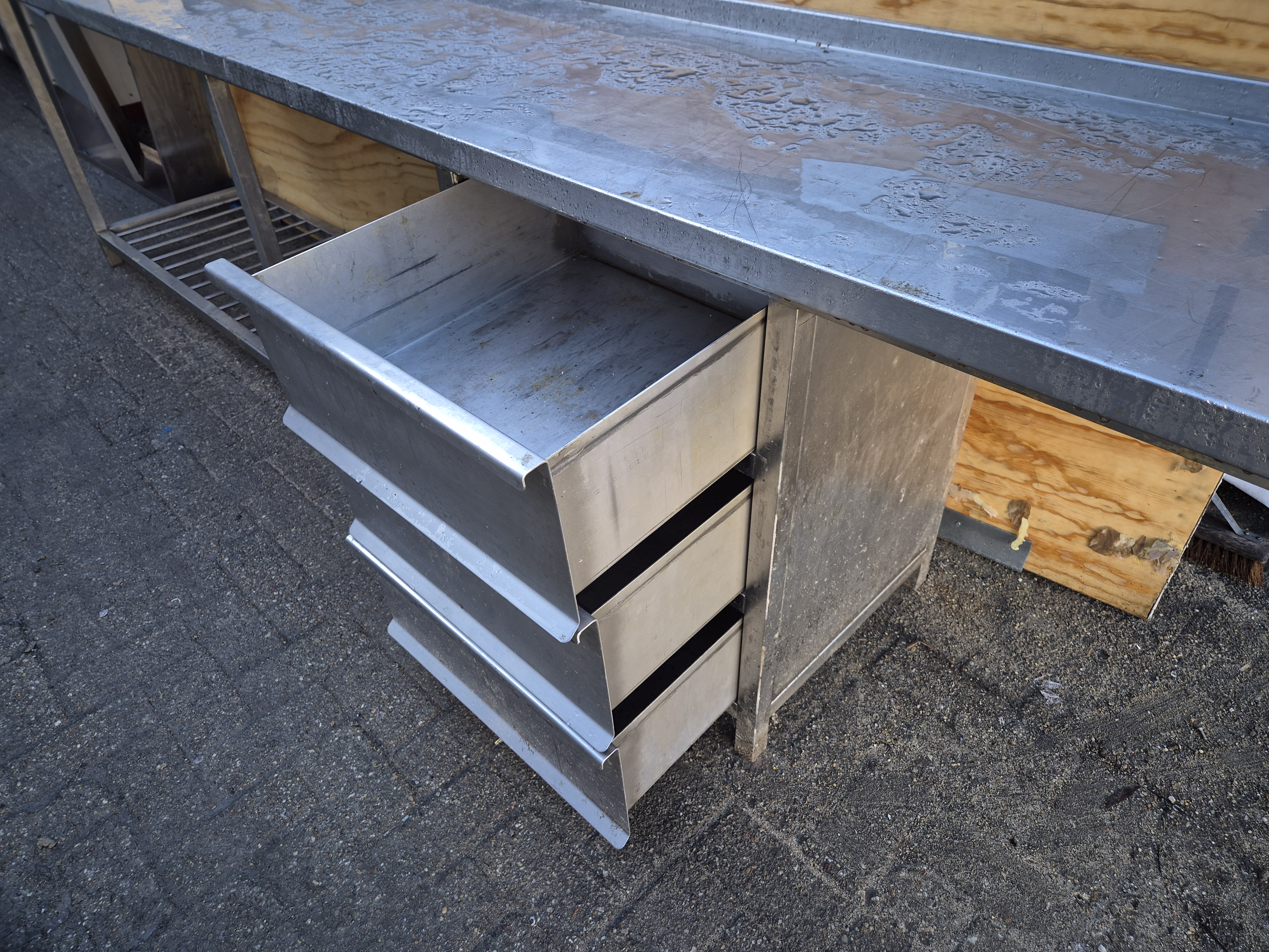 RVS werkblad met 3 ladenkast