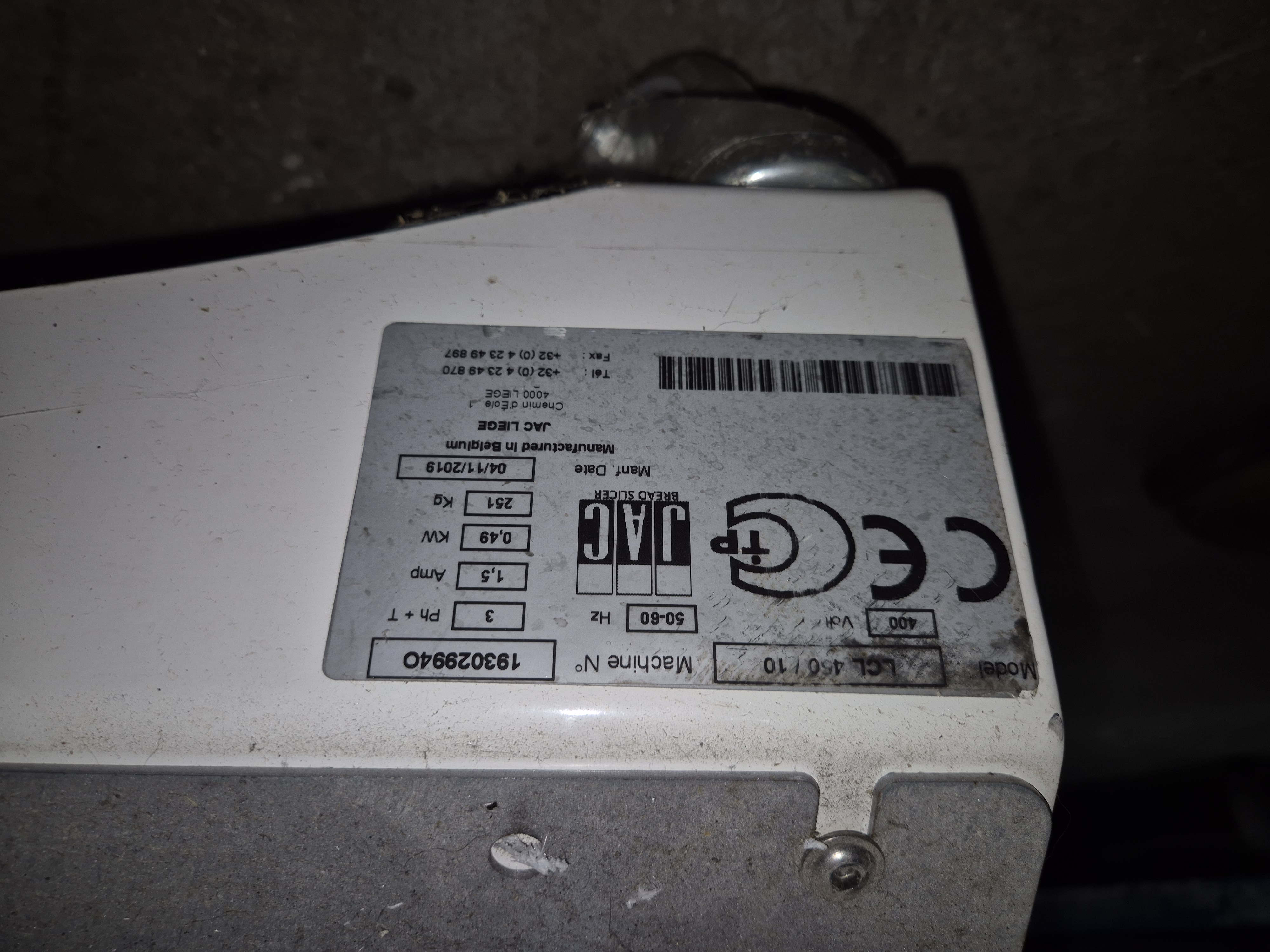 Broodsnijmachine JAC Chute met boven aanvoer