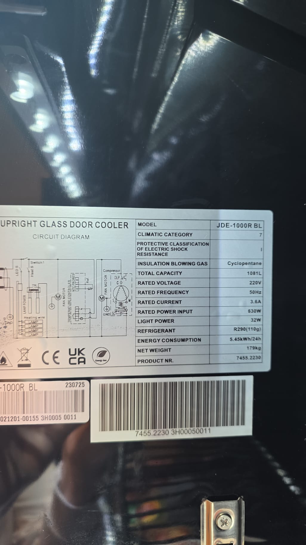 KOELKAST 2 GLASDEUREN ZWART merk Combisteel. Links op de foto !