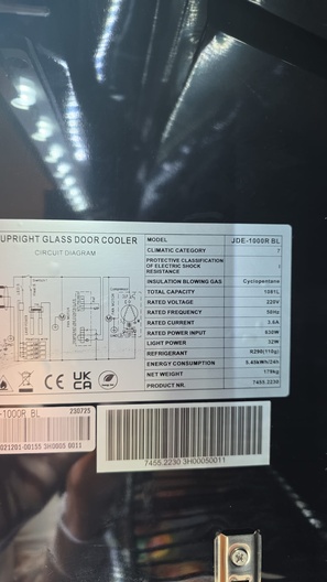 - inhoud 1000 liter - temp. 0/+10ºC - gewicht 144 kg.