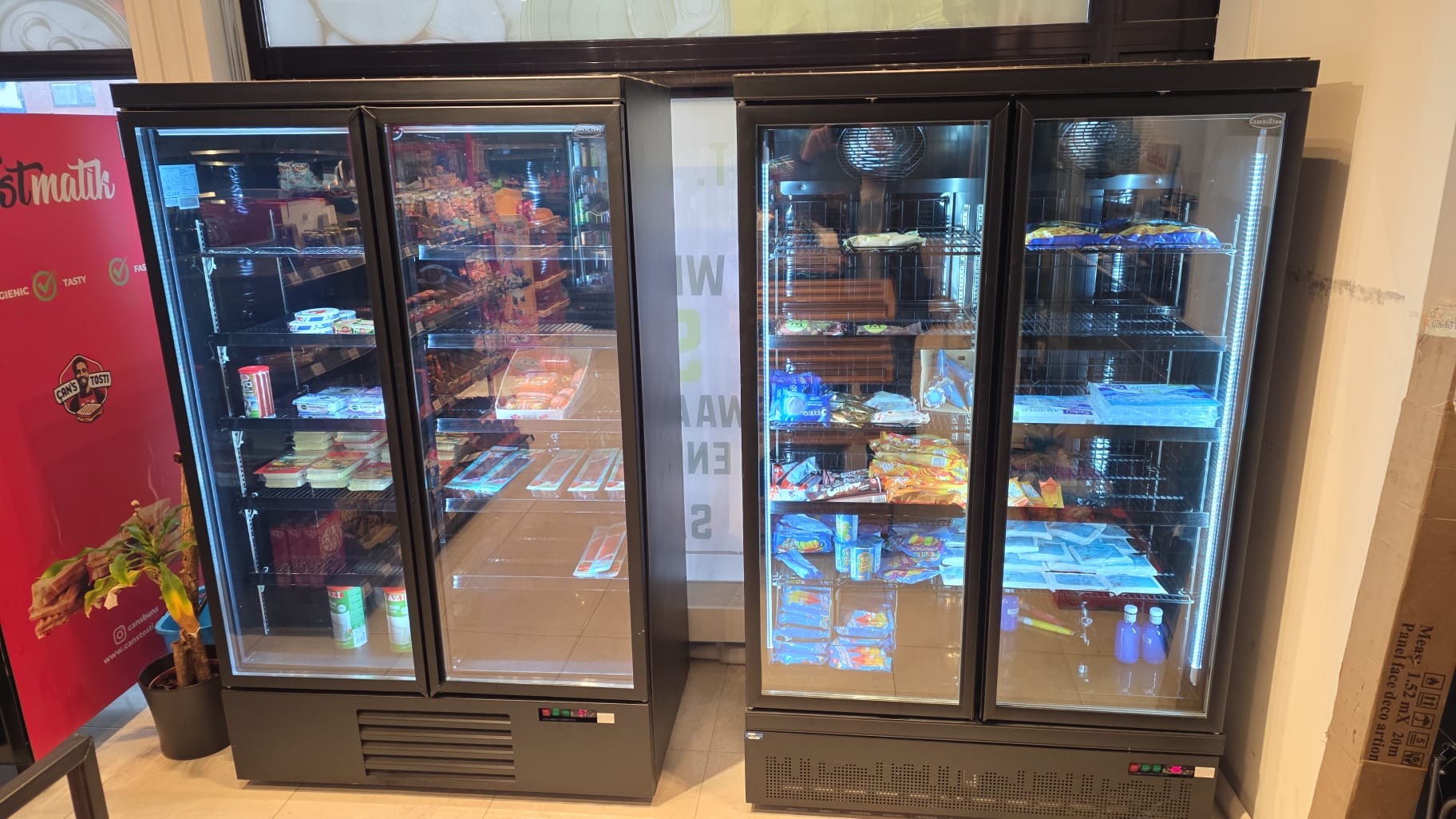 VRIESKAST 2 GLASDEUREN ZWART merk Combisteel. Op de foto rechts !