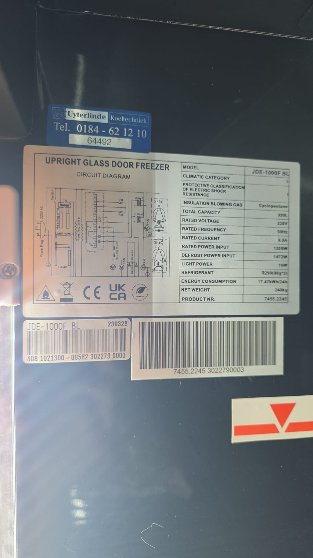 - temp. -22/-18ºC - gewicht 240 kg.