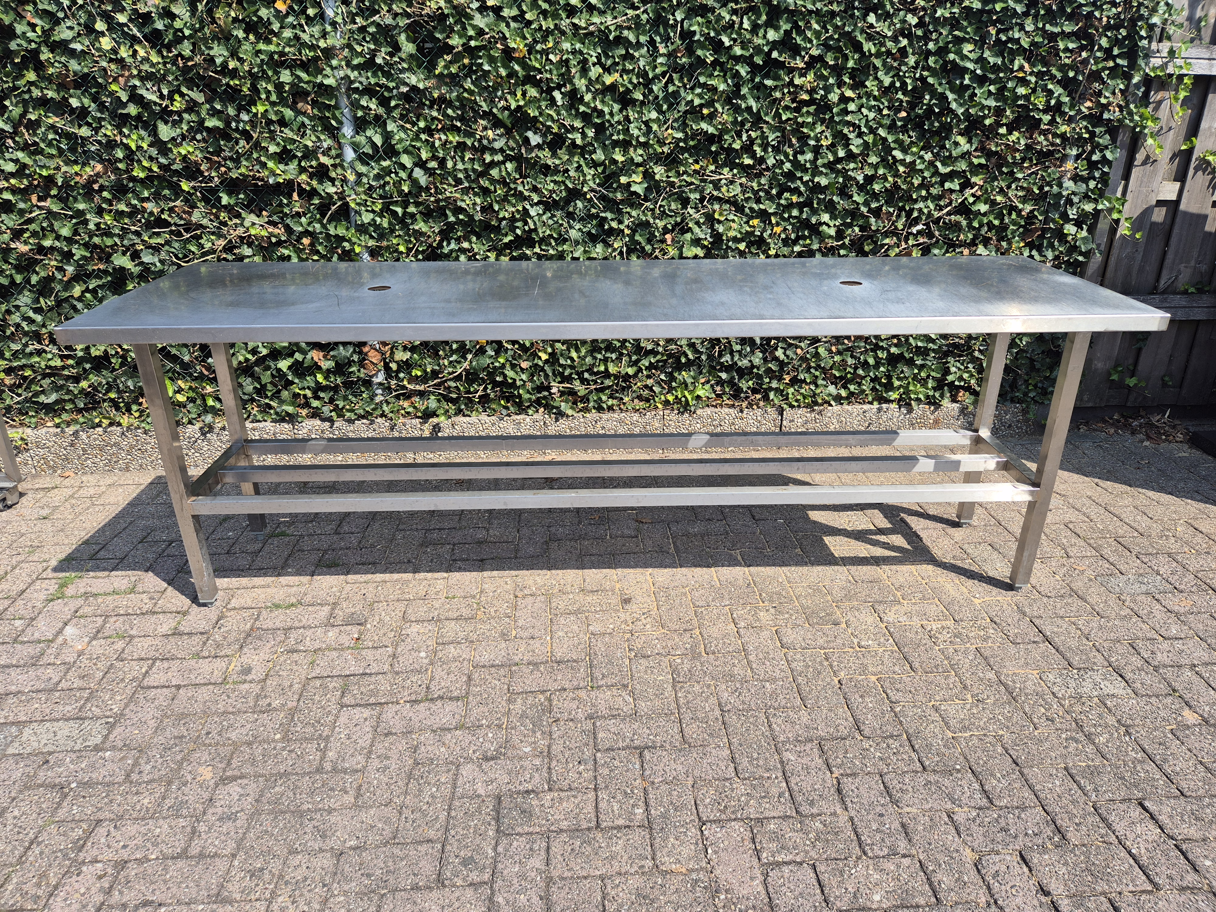tafel met 2 gaten voor doorvoer elektra afmetingen : 250x70x93 cm