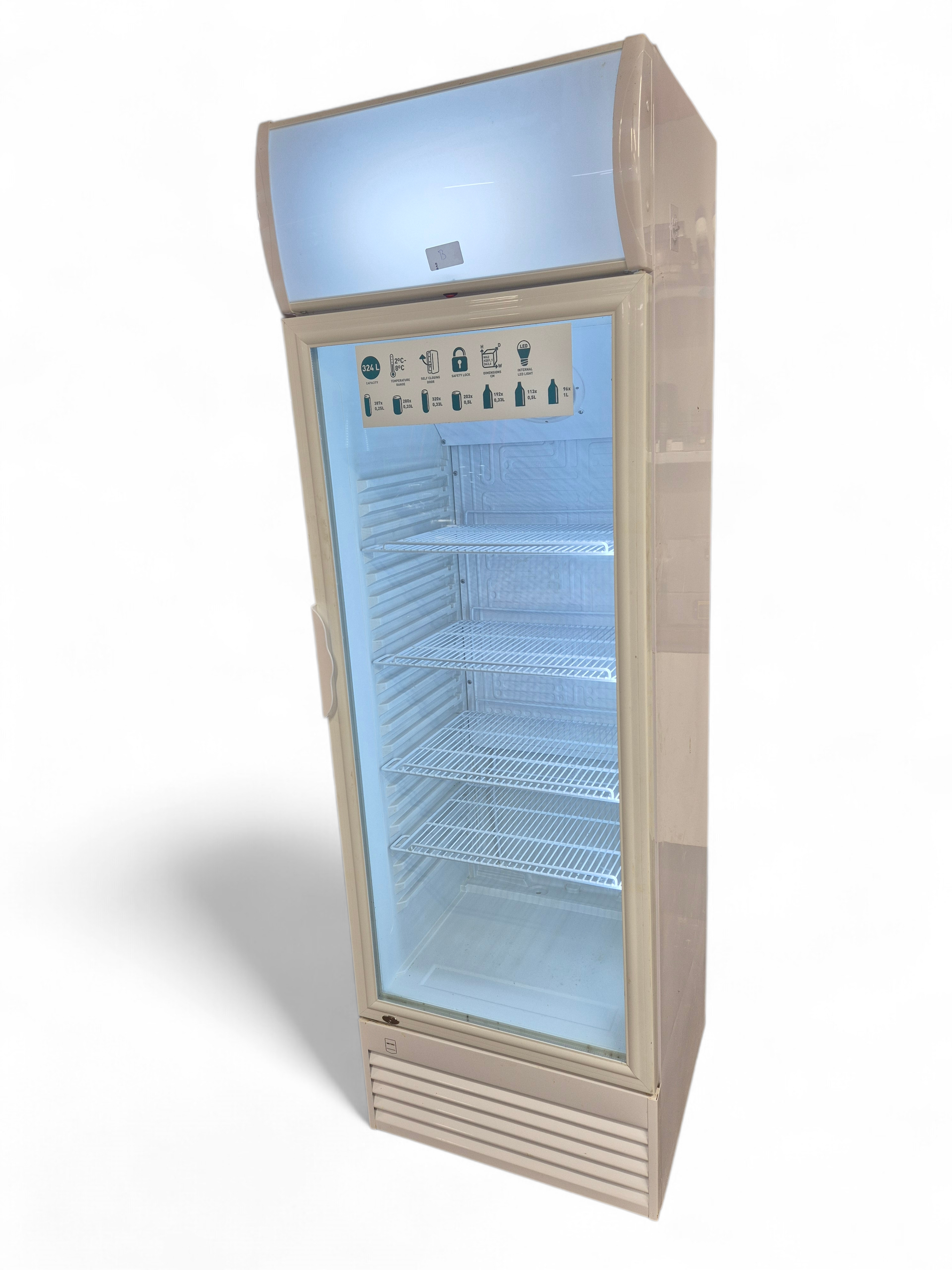 | glas deur koeling , afmetingen 63x62x202 cm , 220 volt , met verlichting. |