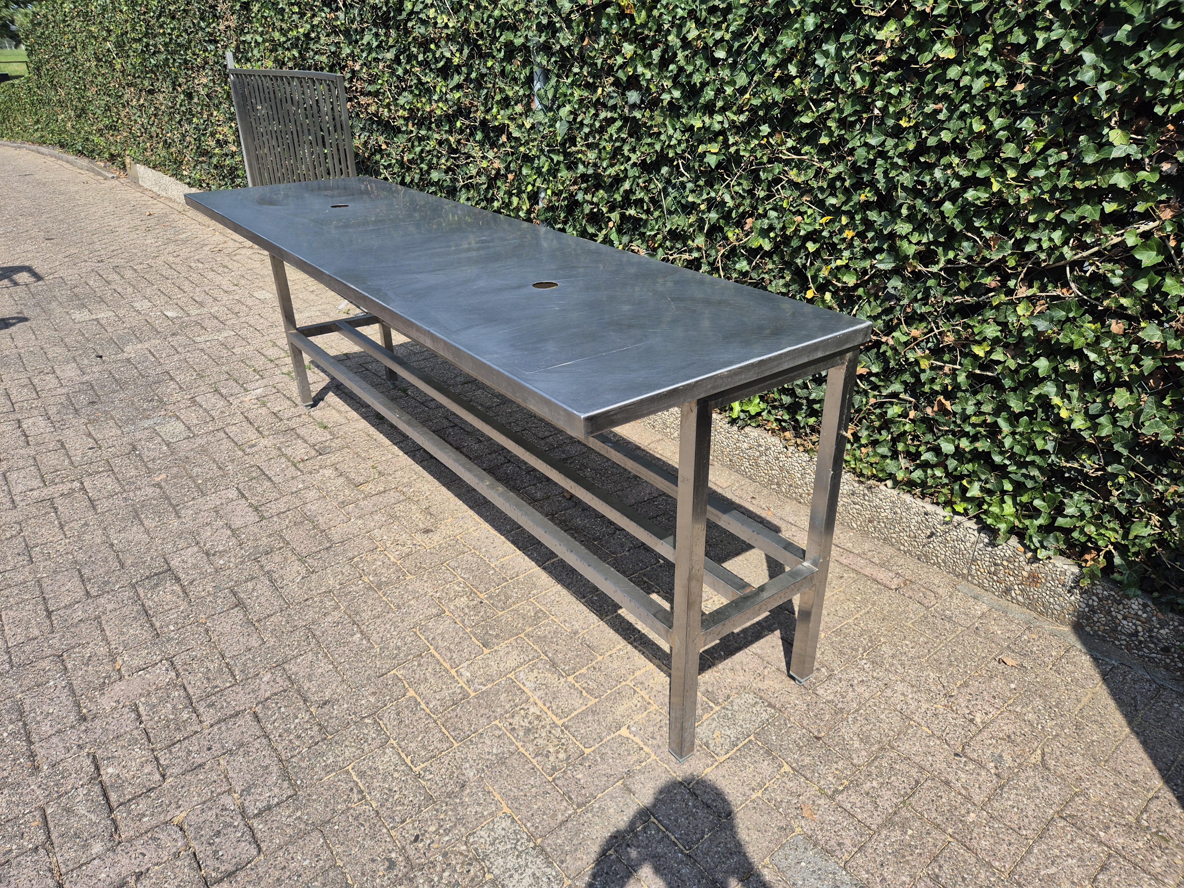 | tafel met 2 gaten voor doorvoer elektra afmetingen : 250x70x93 cm |