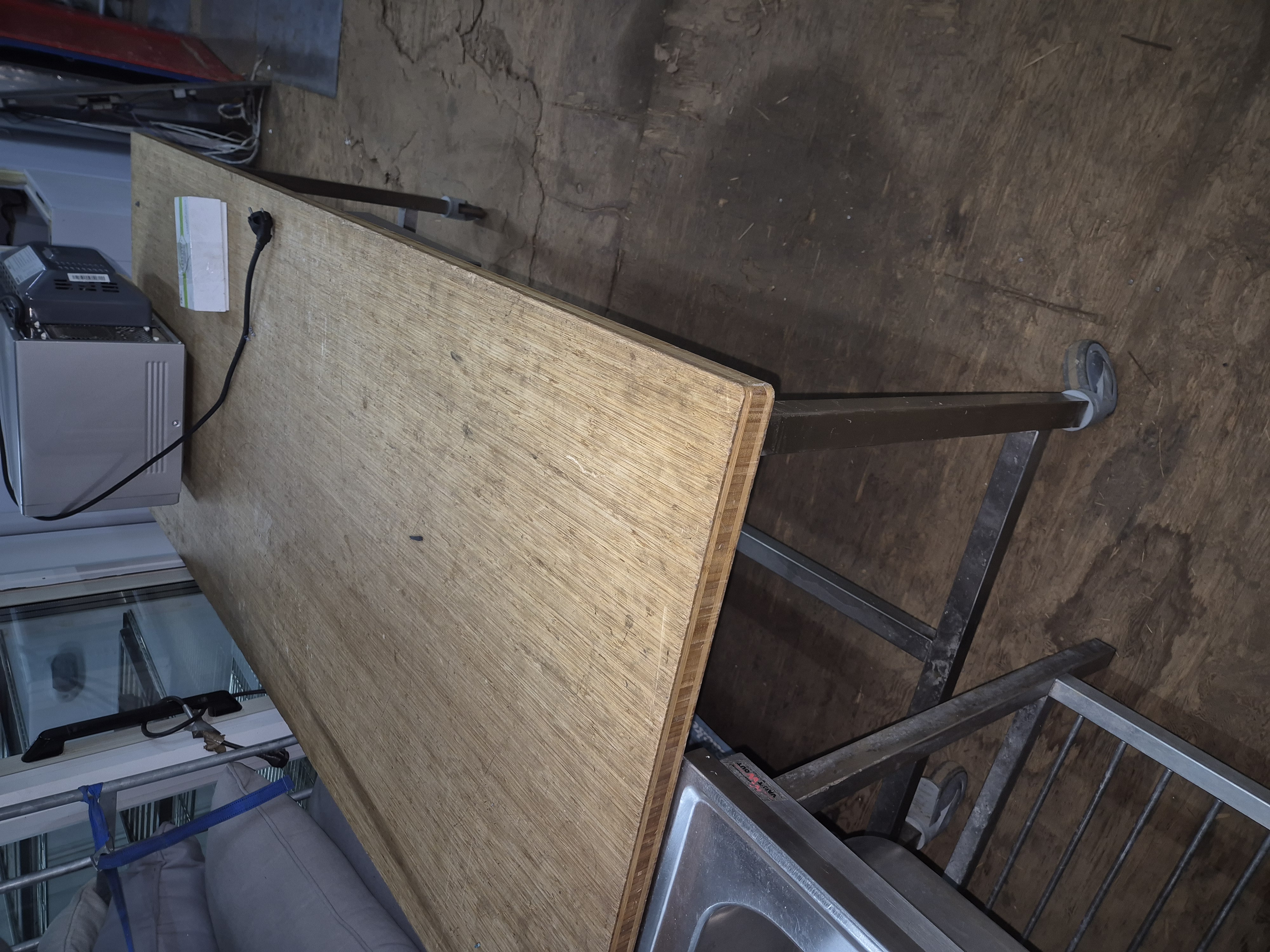Bakkers werkbank met houten blad op wielen