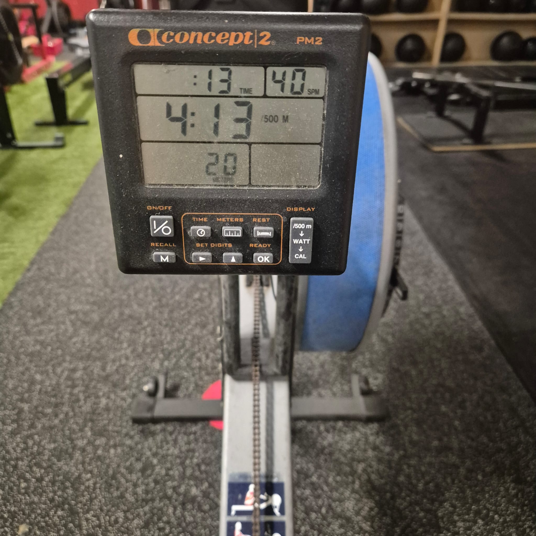 Display is niet helemaal functioneel. Als je gaat roeien doet ie het. Verder goede roeier.